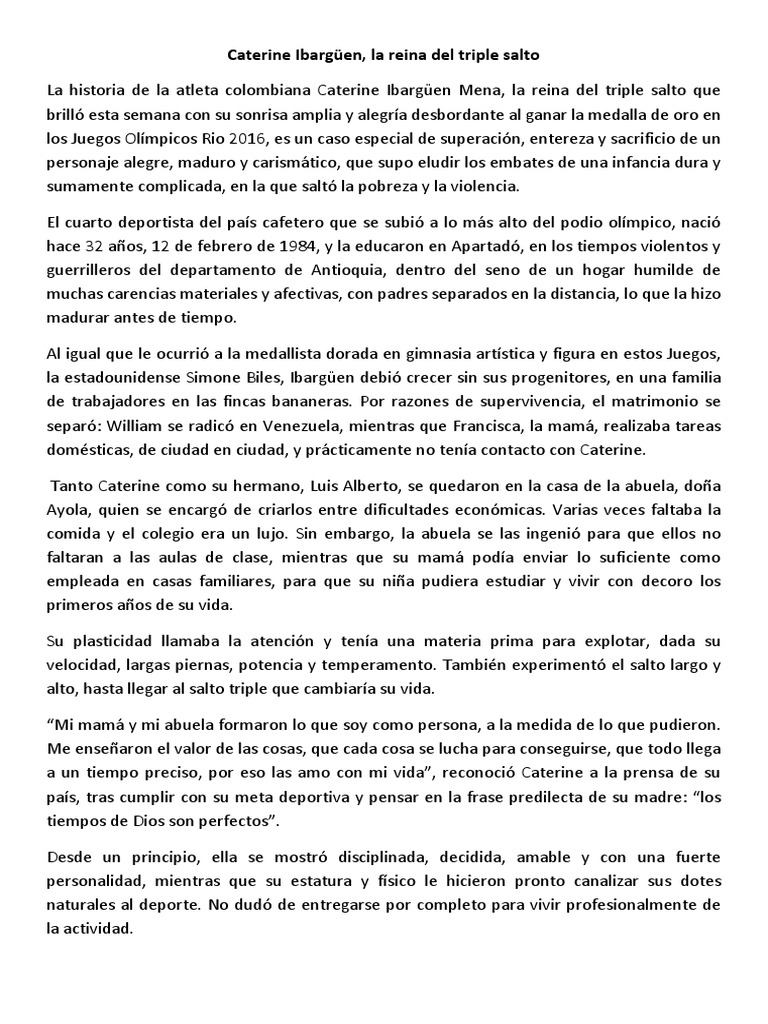 Lea aquí todas las noticias sobre caterine ibargüen: